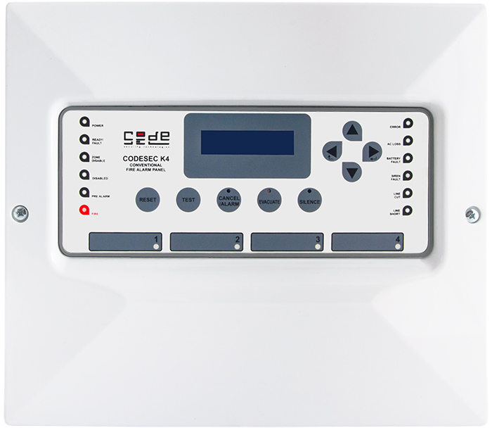 4 Bölgeli Konvansiyonel Yangın İhbar Paneli 4 Zon, 2×16 Alfanumerik LCD Display, Alarm, Kısadevre ve Açıkdevre Ledi, Plastik Ön Panel, Metal Gövde, Kullanıcı dostu kolay kurulum ve kullanım, Gece/ Gündüz Modu, 1 Süpervize Siren Çıkışı, Alarm ve Hata Röle Çıkışı, 24V Yardımcı Besleme Çıkışı, EN54-2/4 standardına uygun. Boyutlar: 34,5x36x10,5cm